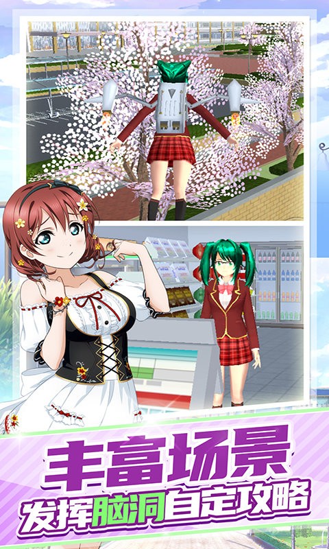 电音少女作为一款以校园为体验的模拟模拟经营游戏,玩法和樱花少女类似。在游戏里玩家作为一个电音少女,搭配各种服饰,开启校园生活,上课,看书,吃零食,谈爱情等玩法任你解锁,和你的电音少女一起玩转校园吧。