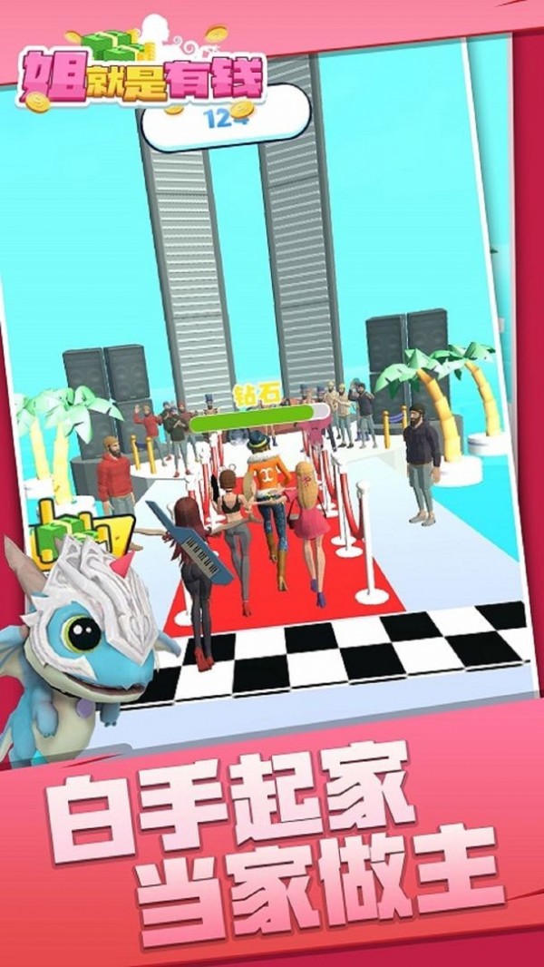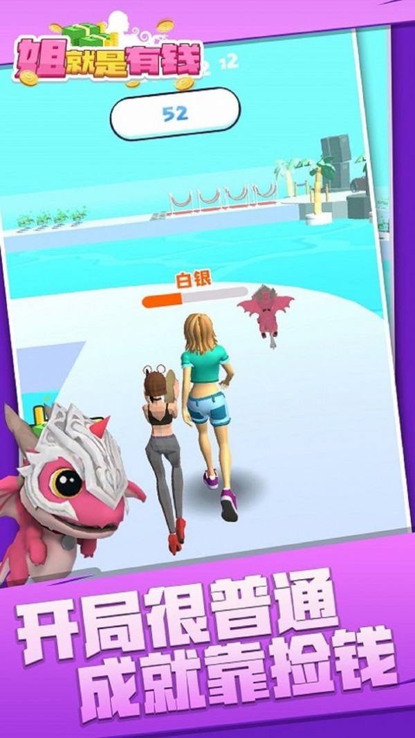 姐就是有钱小游戏作为一款卡通风格的跑酷闯关游戏,在姐就是有钱各种场景中不断的奔跑,并且将地上的钞票全部捡起来,让你从平凡变得富有。趣味跑酷的冒险玩法,超多的角色皮肤选择,姐就是有钱游戏的每个地图中有很多的障碍物,一定要在你的对手之前到达终点。