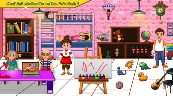 1、探索您的新家,找到隐藏的宝藏,并在假装的家庭豪宅中与妈妈、爸爸和兄弟姐妹一起创造自己的小故事。