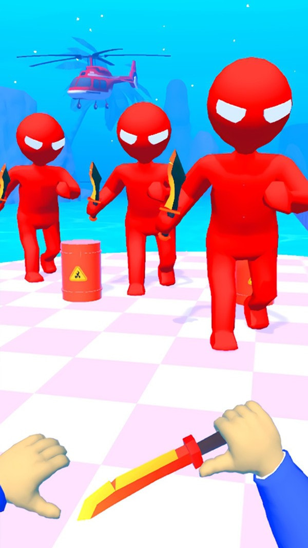 玩家可以控制角色拿起飞刀像对面的敌人进行飞刀攻击,注意在他们到达你面前之前打败他们。
