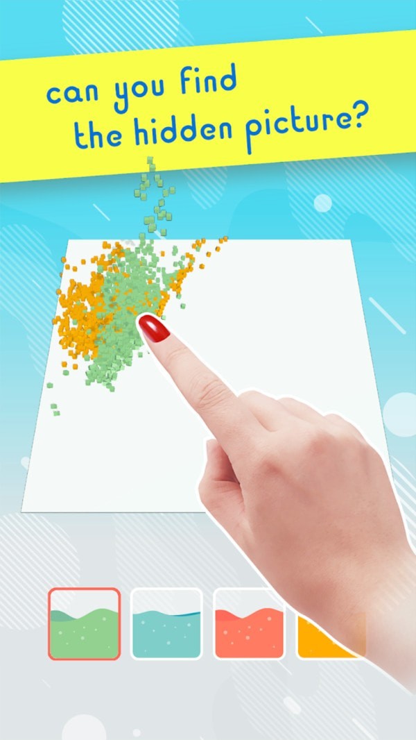 1、沙画3D游戏界面简单清新,色彩运用非常华丽,沙子被用来制作不同形状的物体;