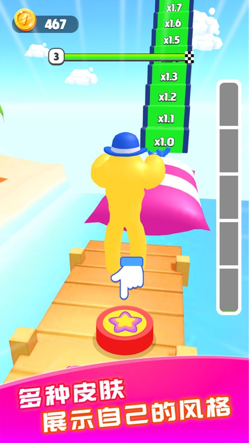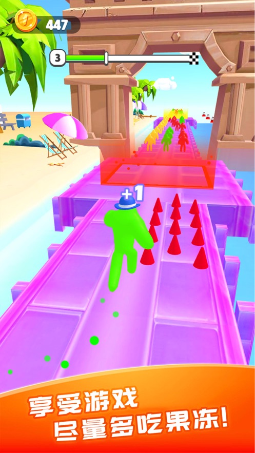 超级黏液人大闯关手游作为一款有趣的跑酷闯关手游。跑酷的主角是一个qq弹弹的果冻人,在赛道上收集果冻的话能够让果冻人越来越巨大,不过遇见障碍物没有及时躲避的话就会减少自己的体积,这样在终点获得的分数奖励就会变少,拥有超多的皮肤选择,快来闯关解锁吧!