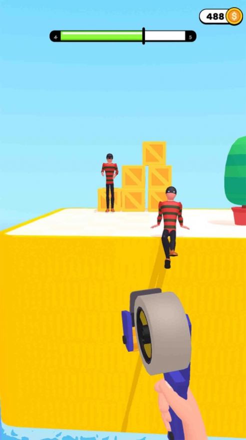 1、拉开胶带,粘住坏人,把他给干掉,玩法很有趣哦;