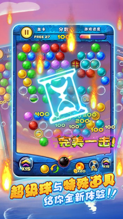 3.在泡泡很多或难度增大时可使用屏幕下方的道具