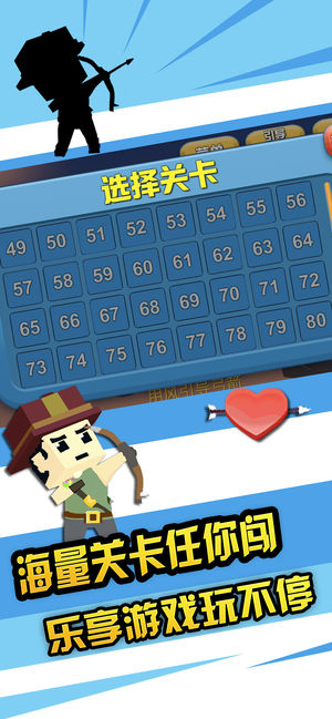 弓箭手大冒险该游戏可以给你无聊的生活带来更多的乐趣,这里有着众多的手游关卡可以让你进行挑战,各种不同的弓箭只要你解锁了就可以使用,有兴趣的朋友一定要来看看了。