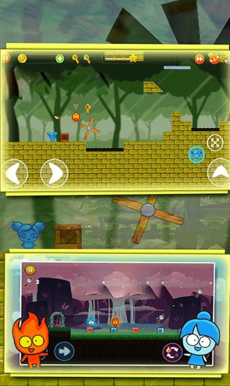 1、冰火双人闯关类型的手游,控制自己的冰火双人在不同的场景之中闯关;