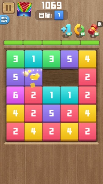 2、一点也不费脑,大家只需要不断的灵活移动数字方块即可,可以快速的找到更多相同颜色的方法;