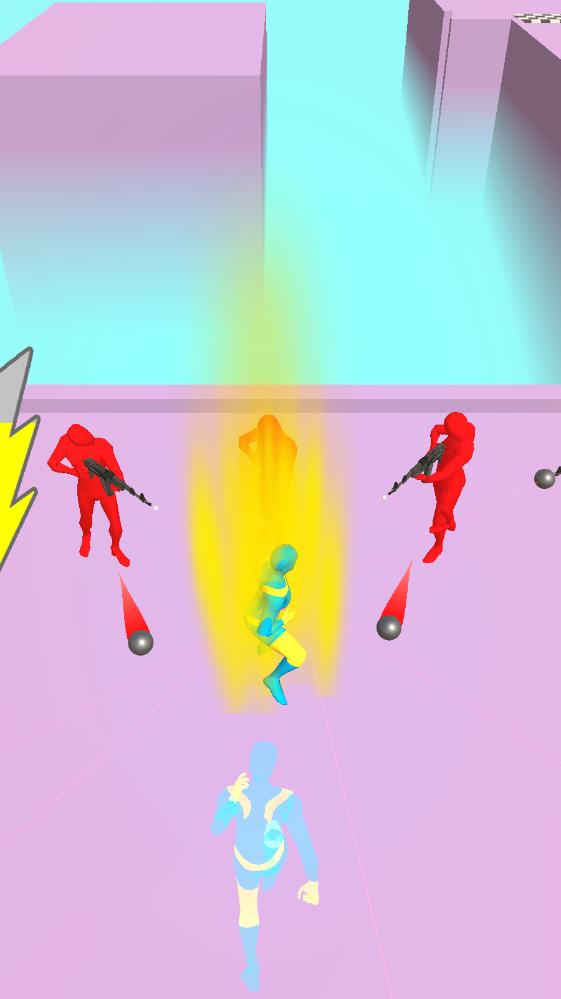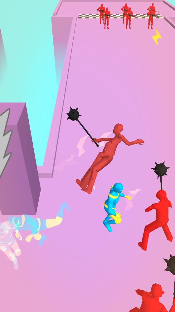 绿色橡皮人单挑:一开始我们的男主十分的脆弱,手无握鸡之力,但是用户可以通过拾取地图上的闪电强化道具让我们男主能在短时间内化身闪电超人,这个时间是无敌的,而且速度十分快,甚至出现了残影,将每一个的敌人全部收拾。