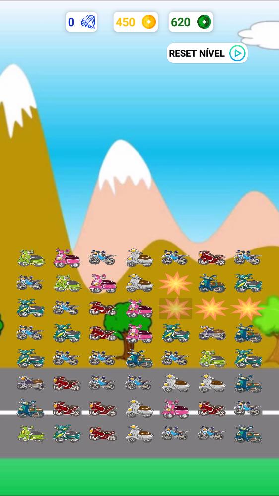 用户可以将 2 个相同摩托车的连接起来,连接线不多于 3 根直线,就可以成功将对子消除。