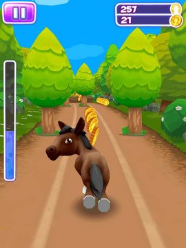 小马赛跑手游作为一款深受小朋友喜欢的趣味跑酷手游,在游戏里玩家在这里控制小马在游戏里面进行怕苦闯关闯关,适时的派出小马,让小马能够顺利的赢得比赛,使用可爱的小马驹能跑、能跳、能冲。继续跑,跳过原木和漂亮的动物,收集硬币,滑下有趣的滑梯。