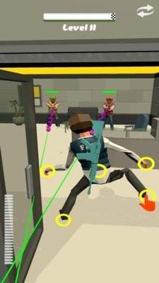 轻松的娱乐设计,基本的躲避子弹规则加上3D的建模画面,带来更多真实的尝试,操作上也比较简单,跟电脑AI或者朋友来一场躲避球的对决!通过像Neo一样移动身体来躲避敌人的每一个子弹,在敌人有机会再次射击之前击落敌人!