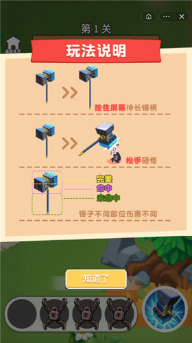 1.手游操作简单,很容易像素,你只需要不断的挥舞你的大锤去消灭敌人,打击感十足;