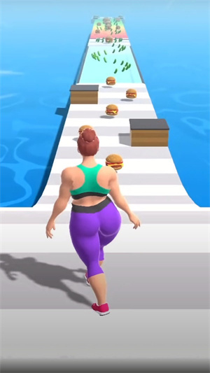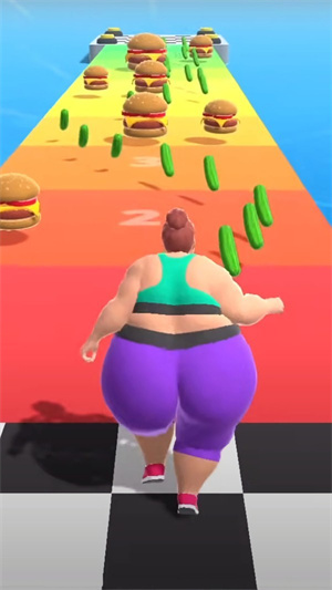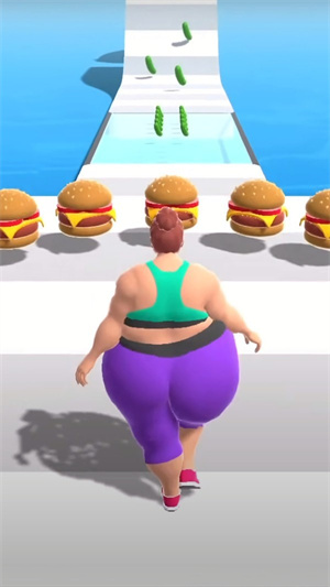 3、需要帮助一个胖子减肥,跑酷中途你想要避免垃圾食品,尽量吃黄瓜蔬菜来减肥。如果你到达终点线之前瘦成一个漂亮的女人是要满足清关得分的。