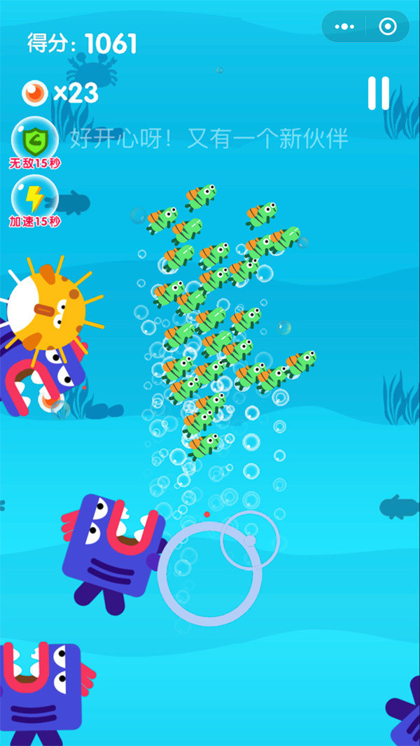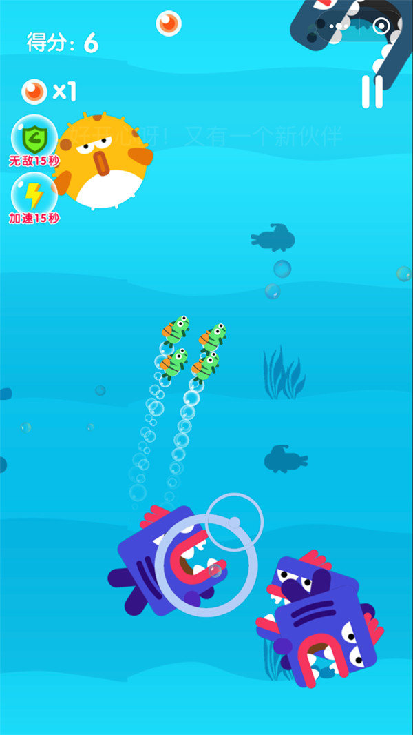让小青鱼能够安全的在海里移动,不要被一些奇怪的致命生物抓到,愉快的游行在海洋中。