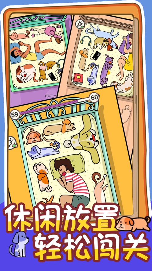 2、随着解锁手游等级的加深,多种形状的狗狗都可以自由放松的睡在床下,画面趣味十足;