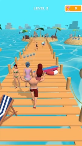 1、穿过一望无际的海滩,尽量把参加派对的每一个女孩都抱起来,小心那些想偷你派对乐趣的老太太,到达终点。