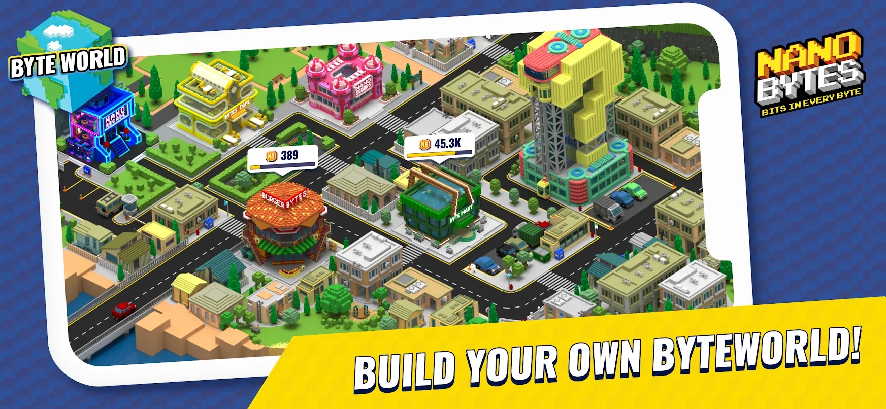 1、收集NanoBytes,并将您的ByteWorld打造为一个充满手游,挑战等等的繁华都市;