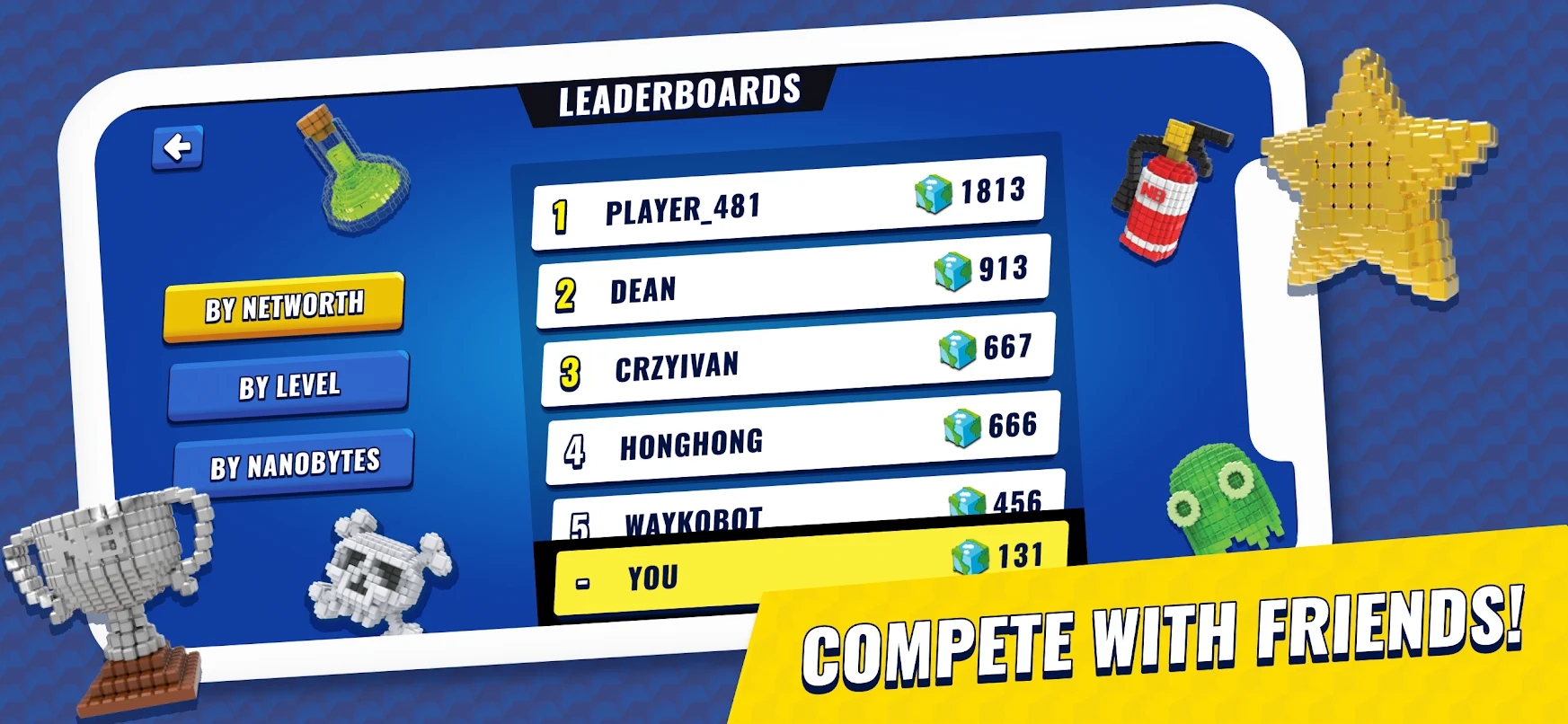 2、解锁迷你手游升级以访问不断增长的手游组合。与您的朋友进行独奏或PvP比赛,争夺全球排行榜的最高分;