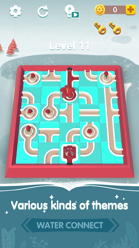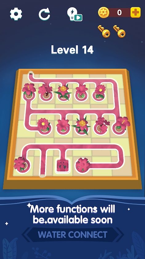 水连接种植你的花朵手游作为一款益智闯关手游。玩法类似于一笔画,我们需要通过改变水流的流向,来为每一朵花朵灌溉水源,当每一个花朵都得到灌溉的时候,我们就能欣赏到这些美丽花朵开花的过程哦,这也是对于通关用户的一种奖励呢!
