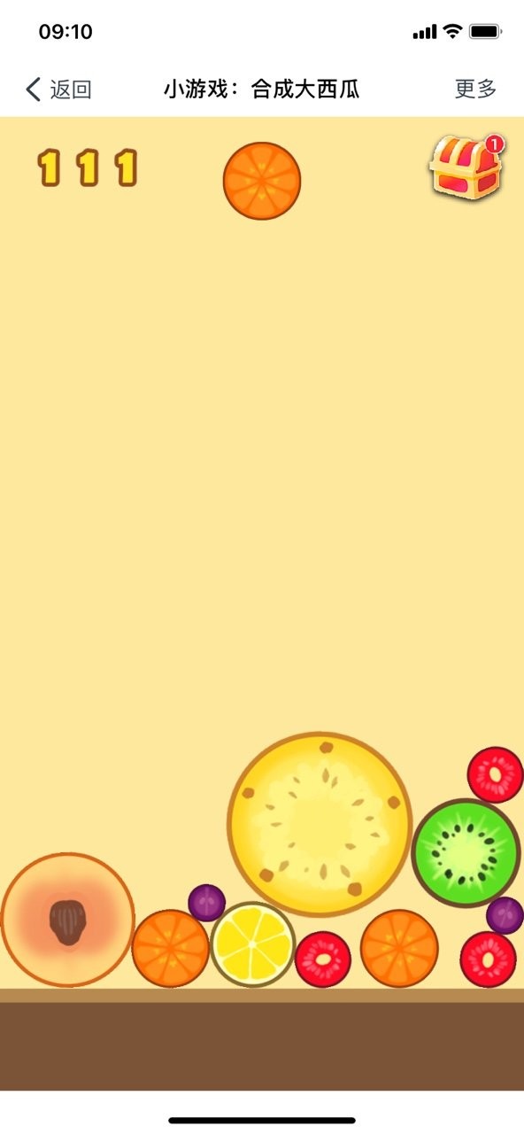 2、从小葡萄开始,相同的水果能够合并,生成新的水果,非常考验运气;