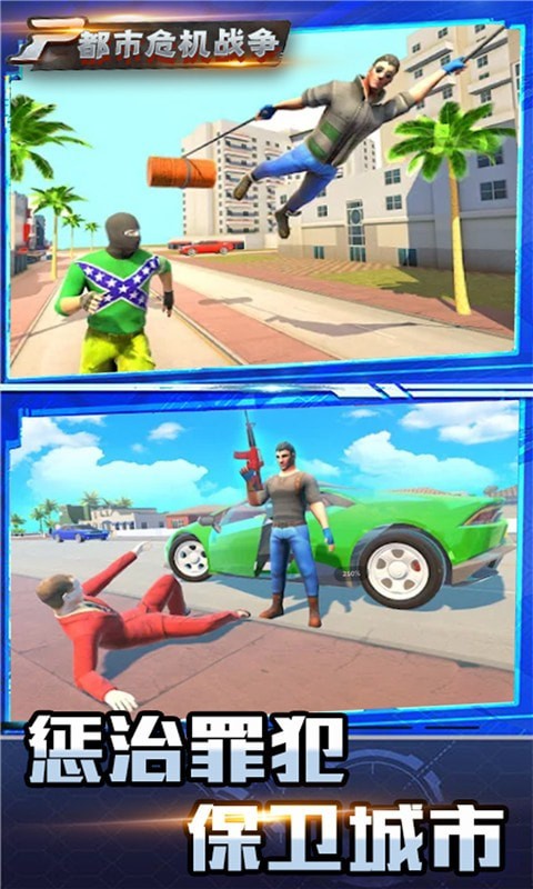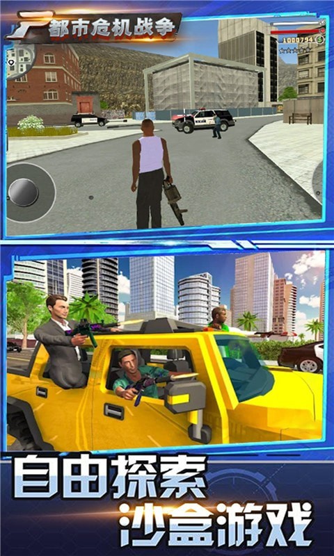 都市危机战争作为一个非常自由的手游,游戏中你要做的就是来守护这个城市,城市中会有非常多的可恶的罪犯破城市,你要拿起你的武器,开着你炫酷的车辆将他们全部逮捕,游戏中会有非常多的车供你驾驶,还有丰富的地图,来这里用你的能力来保卫这个城市的安全吧!