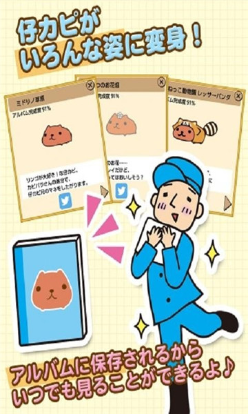 你可以在游戏里面养殖很多水豚,每一只都超级可爱哦,经常给它们喂食,很开心。不仅如此,该游戏的画质还非常的温馨治愈,给人的代入感很强,手游同时的音乐也很不错。感兴趣的小伙伴们快来下载吧。