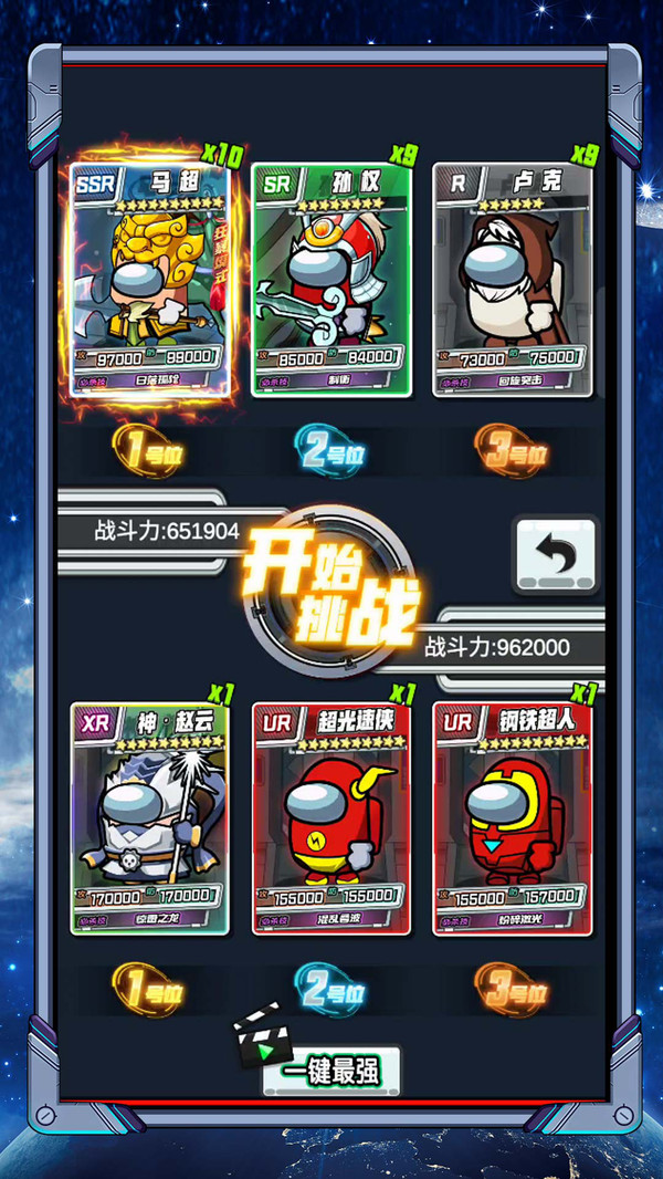 太空人抽卡对决手游作为一款经典有趣的卡牌闯关小游戏,经典的英雄角色卡牌悉数登场,历史上有名的英雄卡牌供你选择,不同时空中来回的穿梭,组建强大的战斗阵营,团队战斗力全新升级,挑战更多刺激的冒险活动。