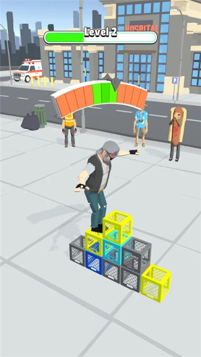 街头牛奶箱挑战这是一款非常好玩又轻松解压的动作闯关手游,不同的关卡有不同的难度,玩家需要在堆积的牛奶箱上完成行走挑战,要控制好你的身体,牛奶箱是很轻盈的,你不能很用力的踩在上面,要保持好心态,一步一步地走过去,抵达终点享受喜悦的心情。