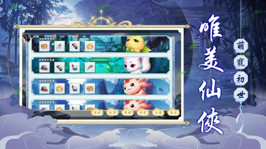 1、这是一款精美的宠物与角色卡牌游戏,多种修真的剧情一起来演绎。