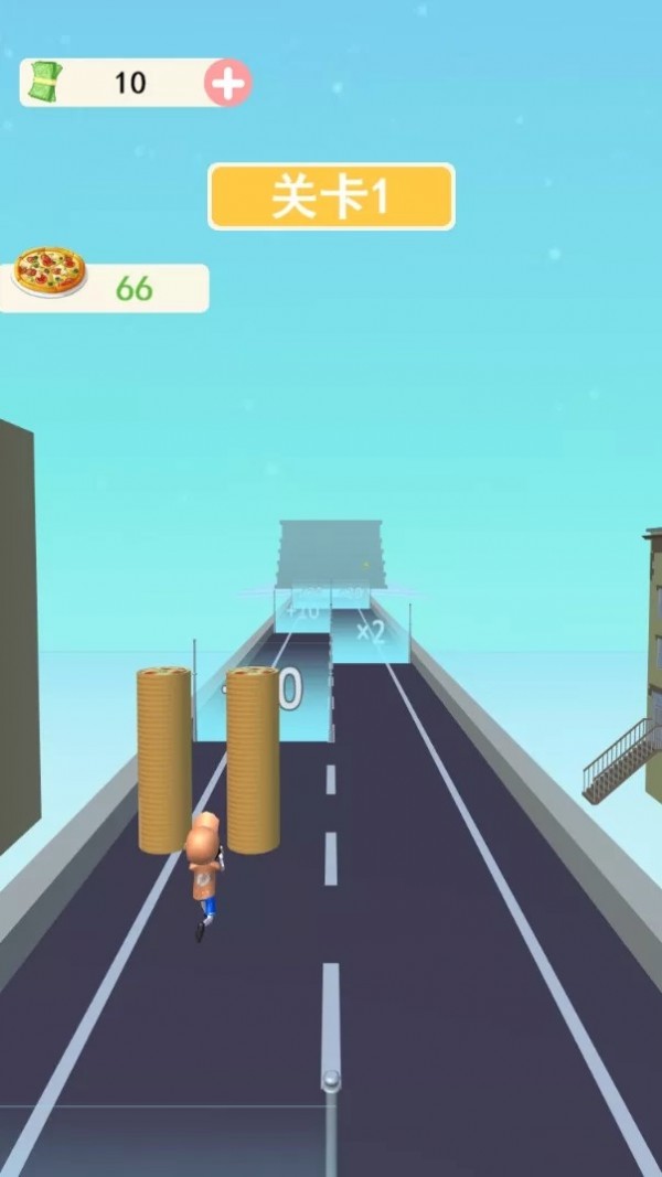 1、真正快节奏手游,手指滑动屏幕就能控制外卖小哥角色前进,注意收集关卡中的金币和披萨。