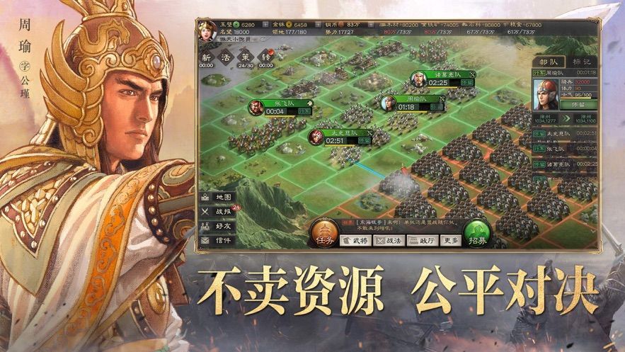 2、打造强力的军团,在这个乱世之中尽情的展开对决,用实力创造无限传奇。