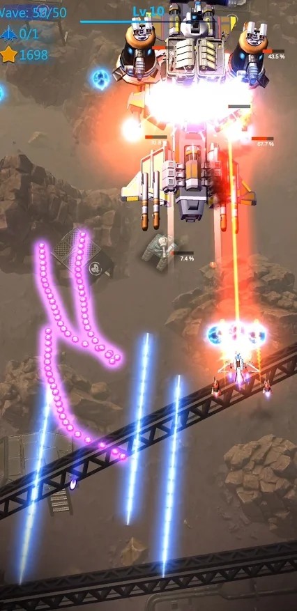 3、满屏的特效绝对能够带给大家极致的视觉享受,控制着自己的飞机在太空之中不断地飞行。