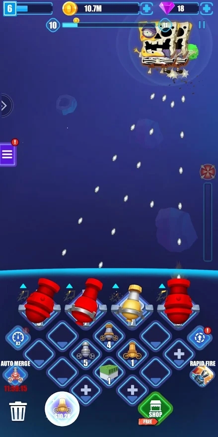2.灵活滑动调整弹丸发射位置,把握最佳时机轰炸目标。