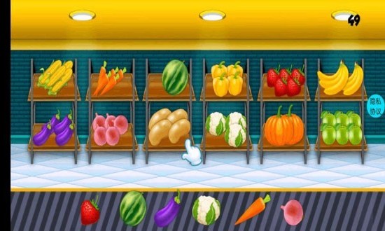 宝宝超市收银员作为一款儿童模拟超市购物应用,轻松快乐休闲有趣。模拟日常生活中的:肉菜超市、化妆品超市、日用品超市等购物尝试的应用。使用过程中,需要挑选指定的商品,并完成首付款过程。让孩子们,在学中玩,玩中学,有趣的学习过程中学习知识。