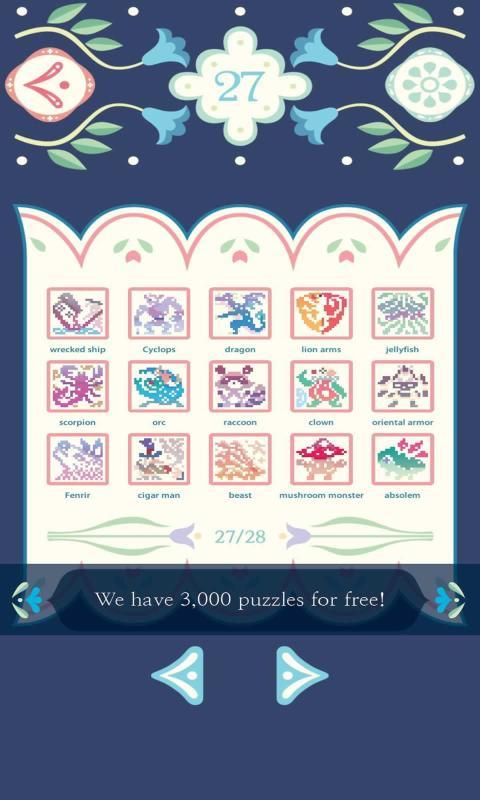 以超多的复古式图案为手游背景,在游戏里玩家需要在整幅图画的方格中,喜欢的小伙伴们快来下载尝试吧!