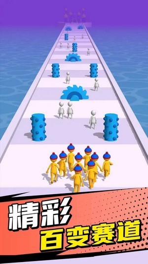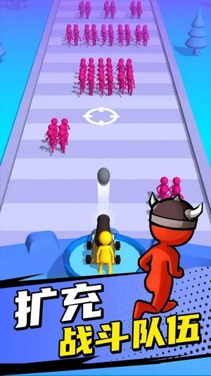 1、加入人群中,开始城市竞赛,战斗并到达城堡,让我们一起在游戏里面不断的奔跑,在途中不断地聚集人,收集人群;