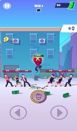 1、你如果想要打败敌人,只用轻轻点击屏幕就可以了,每次拳打脚踢和超级英雄的必杀技都可以为您赢得分数,通过分数来修炼超级英雄必杀技,不断提升力量。