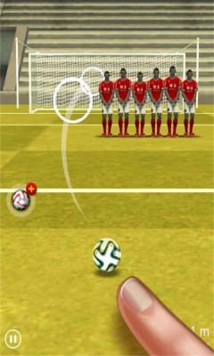 1.突破守门员坚实的防守。射出漂亮的自由球,获得最高分数。