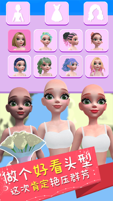 手游画风整体来说还是比较魔性的,而该款当中的主角就是新娘和她的伴娘团们,所以你们必须要在这个过程当中搜集各种各样有趣的道具去抢新郎,做一个好看的发型,这一次也能够艳压群芳,新娘在扔捧花的环节的时候扔的越远,那么她就会越幸福。