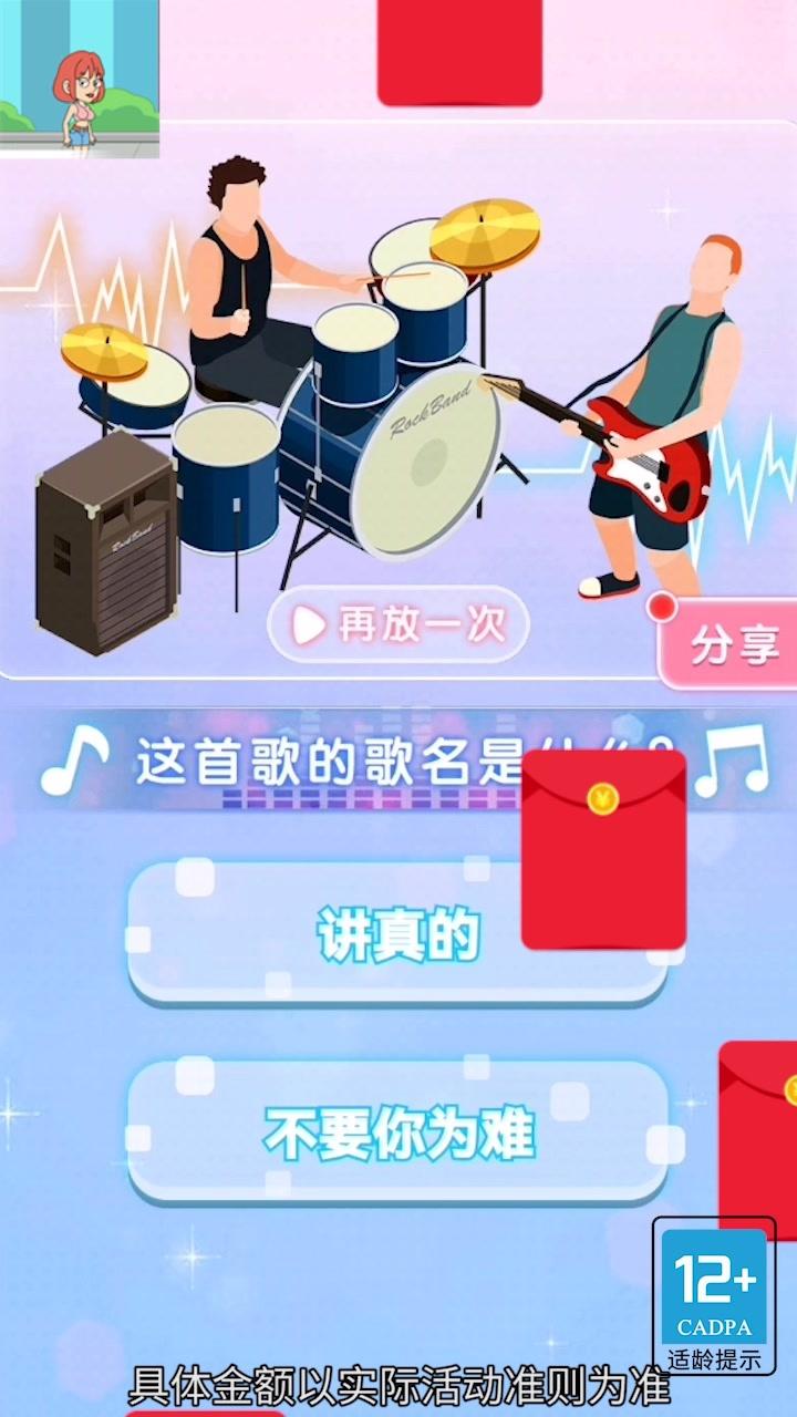 1、猜歌赚钱,猜对就能领红包,还能提现,太爽了!
