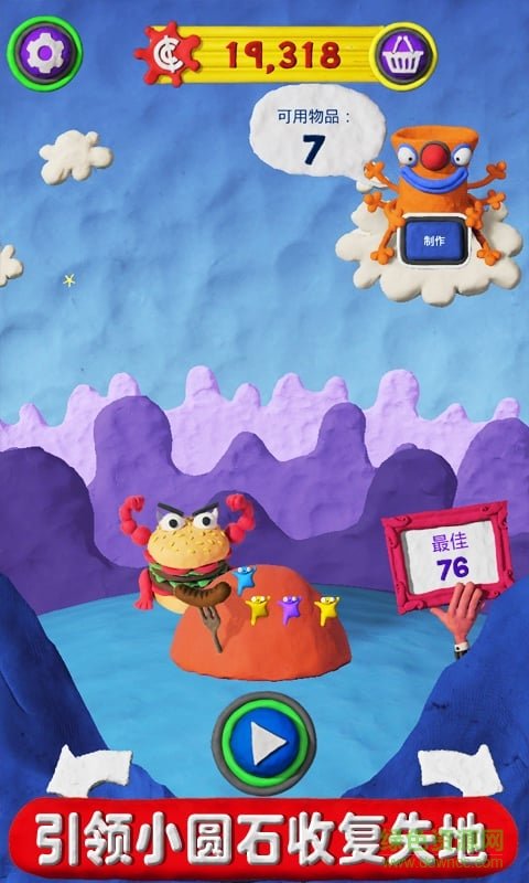 2、在满载粘土的欢乐世界里,引导小圆石滚过五个奇异山丘,从流氓野兽手中收复失地。