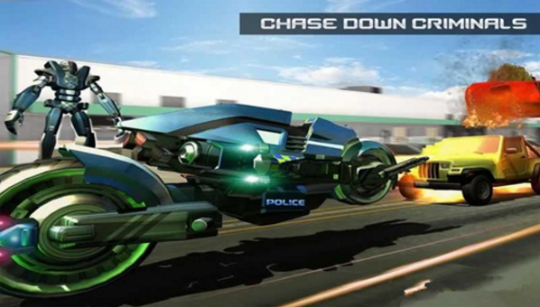 摩托机器人英雄作为一款利用摩托车来追击逃犯的动作类型的手游,在手游里面的摩托车都可以变换多种形态,每种形态都有着不同的功能,比如车载炮弹的不同。为了追上逃犯的车,你想要不断的变换摩托车的形态来迫使逃犯们停下,然后捉拿归案。