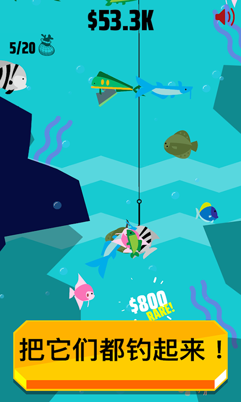 3、努力的捕获各种各样的鱼类,专业的进行智能垂钓。