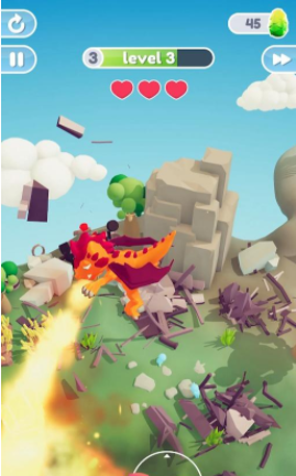 2、到达岛上后,滑动屏幕,恐龙就会跟随大家的手指而移动破坏掉各种建筑物。