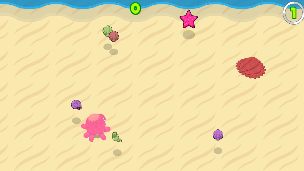 1.用手指按下,躲避敌人和障碍物,让鱿鱼跟着你的手指吃更多的贝壳和其他物体。