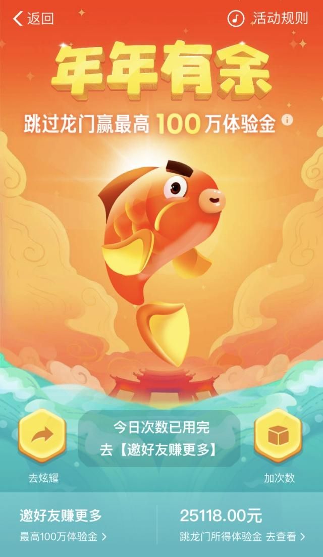 在支付宝之中打开余额宝点击跳龙门即可开始活动之中的小游戏哦。