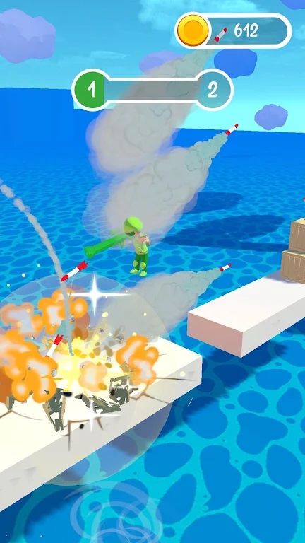 2、手游的玩法还是很简单的,只需要控制方向来发射你的火箭弹就可以;
