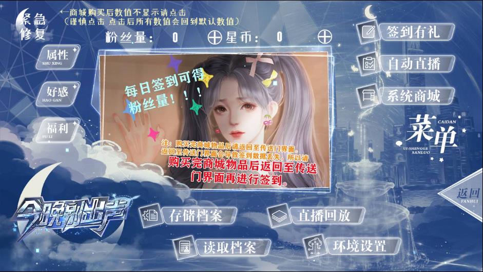1、全新的直播系统,在游戏里面的每个选择会影响到不止你一个粉丝,在游戏里面更有弹幕弹出,屏幕上也会显示出直播数据;