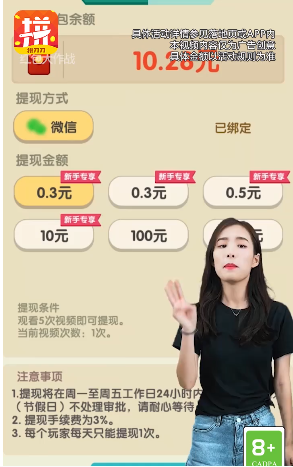 试玩三分钟,新人红包秒到手,每天登录领红包,微信提现秒到账。