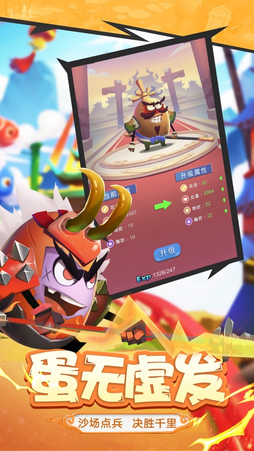 1、来到这独一无二的蛋蛋世界,玩出您的智慧,集结自己的得力英雄;